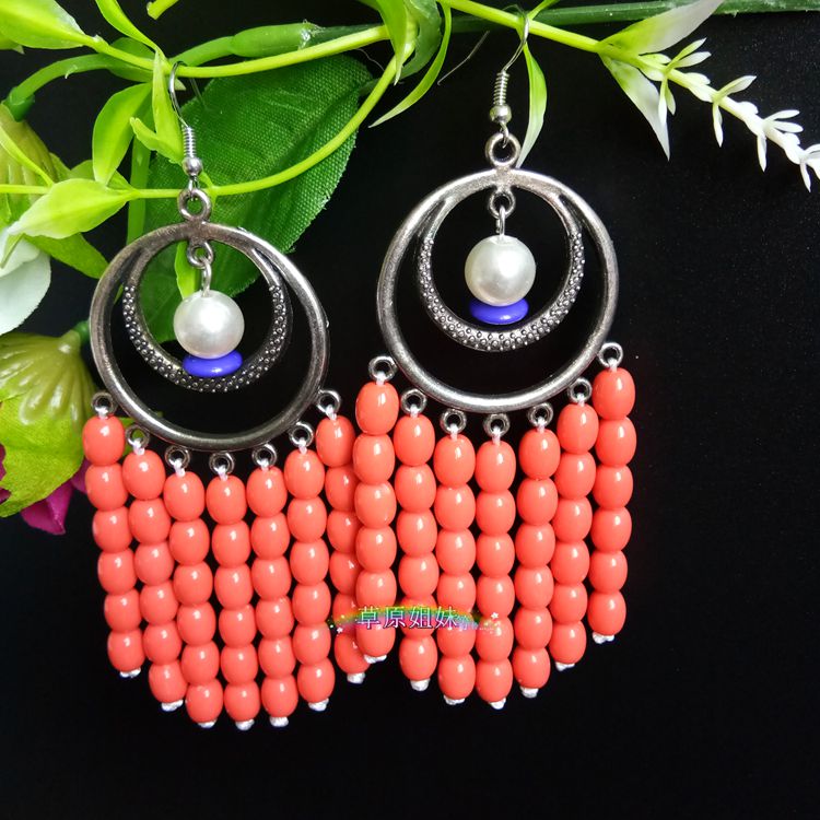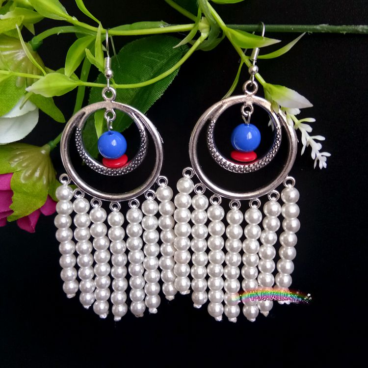Mongolian Elements Handmade Strings Pearl Earrings National Wind Personality Design Earbuke Streaming Su short Temperament Earrings
