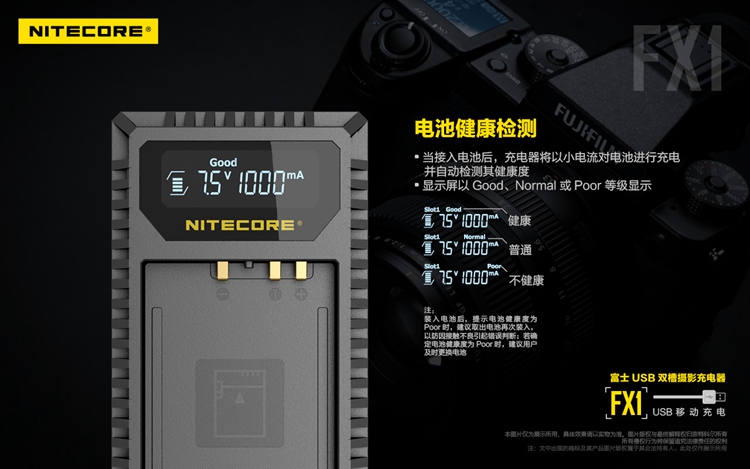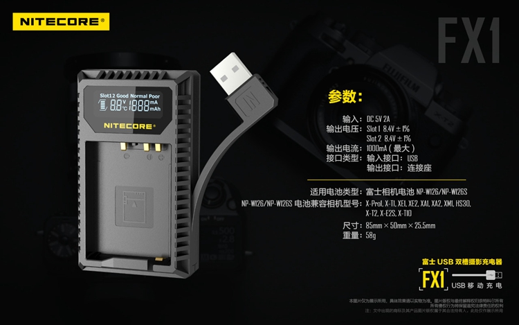 NITECORE Knight Cole FX1 Fujifilm Camera Battery Travel Charger NP-W126 Battery Holder Charger