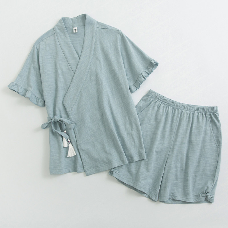 Day Style Pyjamas Female Summer Thin cotton kimono Pure Cotton Kimono Costume short sleeves and wind Japanese men loose Home Suits Suit