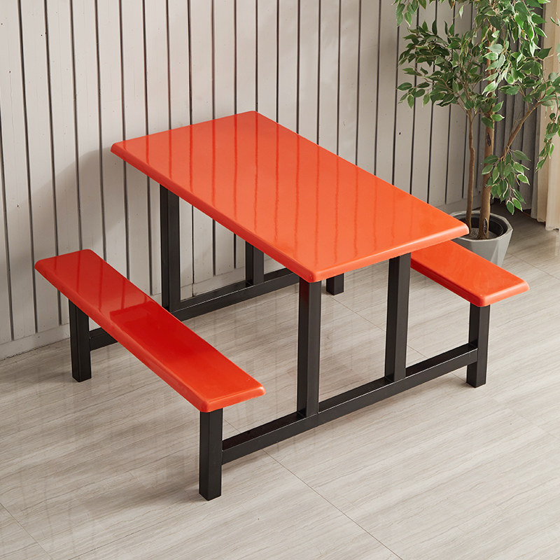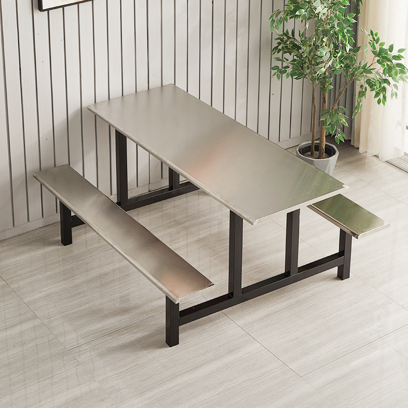 School students and staff canteen dining table and chair combination 4 people 8 people staff factory stainless steel one-piece fast food table and chair