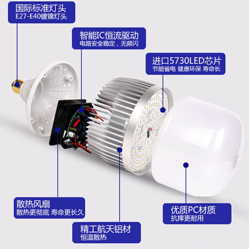LED bulb high-power bulb E27E40 screw super bright workshop workshop home lighting energy-saving lamp 100W