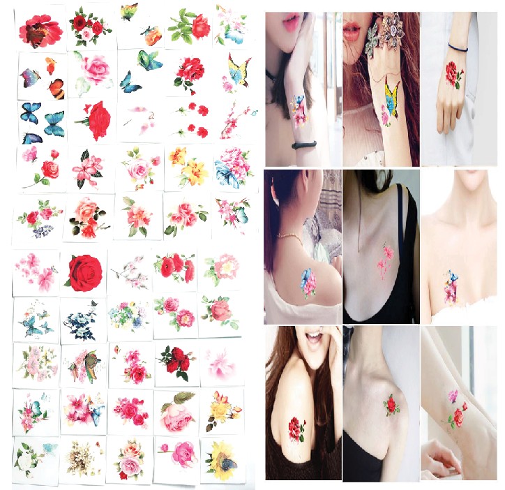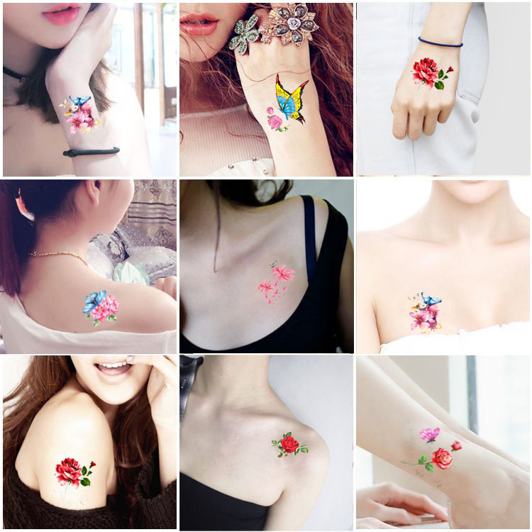 3d flower tattoo stickers waterproof women lasting small fresh rose butterfly ankle clavicle simulation tattoo sexy