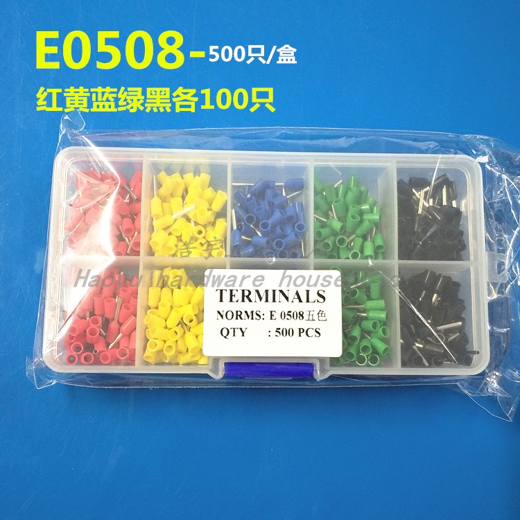 Needle type 500 only 5 color suit E0508 E1008 small black clamp wire cold pressed end head pre-insulated VE wiring terminal