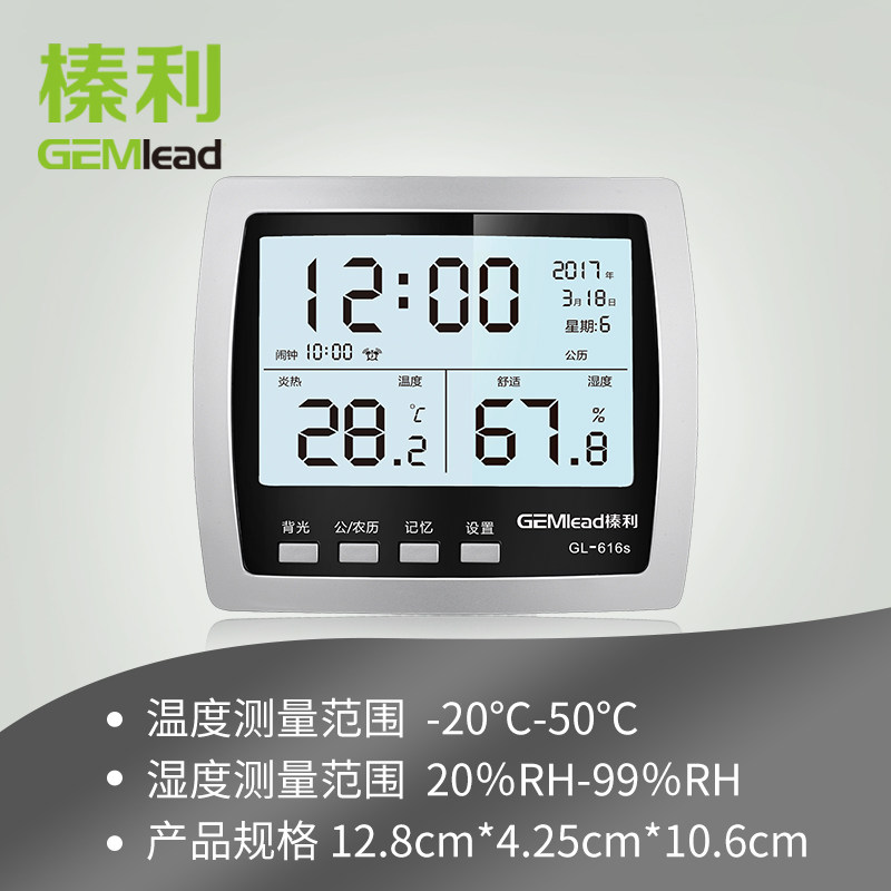 Hazelli GL - 616s electronic digital display household temperature and humidity meter precision indoor night light gauge alarm clock