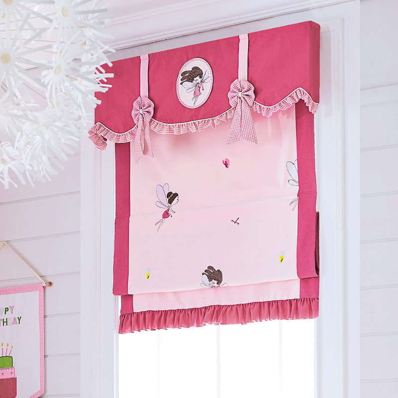 Sweet pink in wind girl princess Rome curtain lifting curtain shade folding curtain floating curtain embroidery blossom color