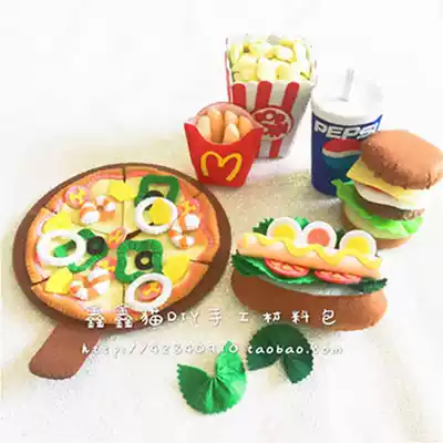 Cut-free non-woven handmade diy material package simulation food pizza fries kindergarten homework