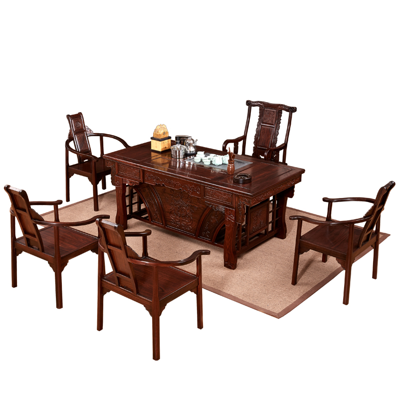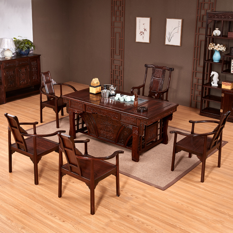 1 58 m East African sour branches tea table and chairs combined with six sets of 1 78 m East African sour branches tea table and chairs combined with six pieces of 1 58 m Flow Cloud Baifu Tea Table Single Table
