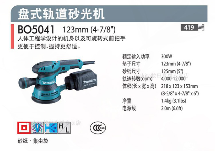 Makita disc orbital sander BO5041 furniture woodworking sandpaper machine disc grinding and polishing machine 125MM