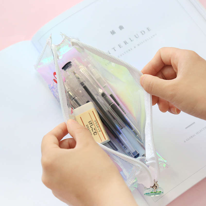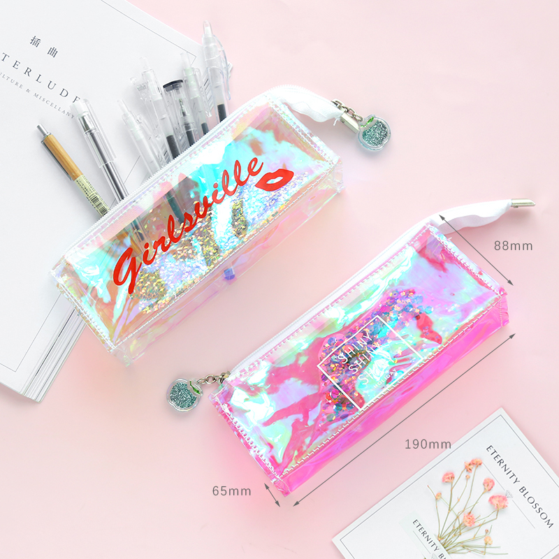 South Korea cute minimalist transparent pen bag beginner high school high school girl heart flow sand creative laser male and female pencil case