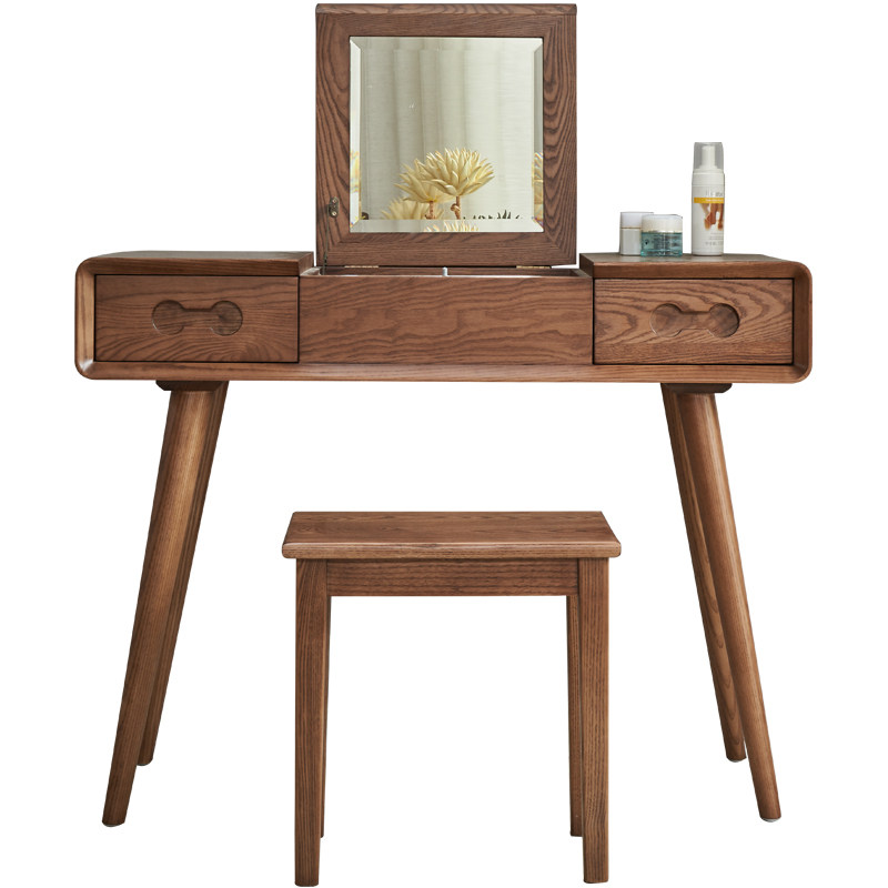 Nordic solid wood dresser Bedroom minimalist Makeup Table Log Small Family Type Flip Flop Multifunction Provincial Space Dresser-Taobao