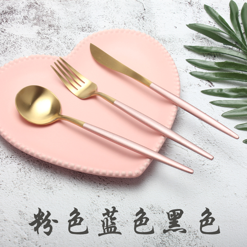Pink Gold Spoon Powder Golden Fork Pink Gold Knife Blue Star Spoon Blue Star Fork Blue Star Knife Son Black Gold Spoon Black Gold Fork Black Gold Knife Son