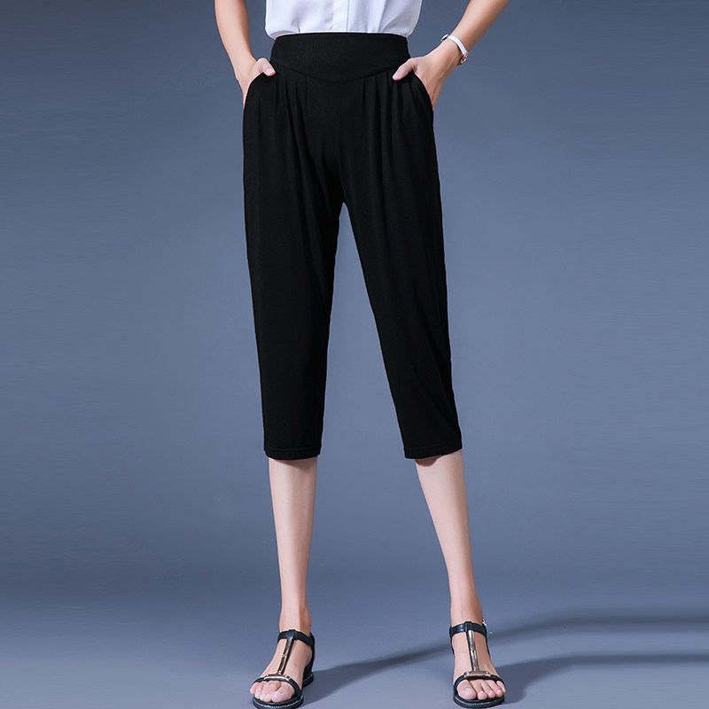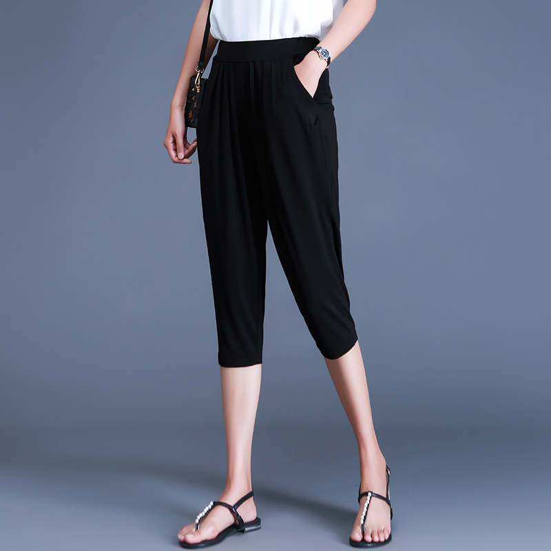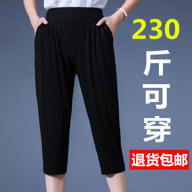 Fat plus size thin seven-point pants female summer fat mm200 kg ice silk mother loose 230 kg seven-point pants