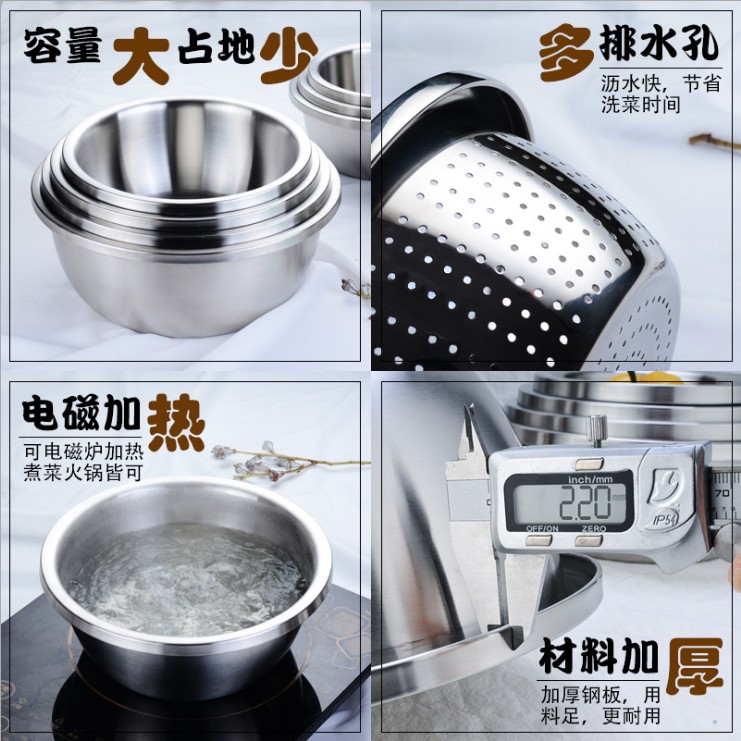Large SUS304 stainless steel rice washing basin household vegetable washing basin leaking water basin thickened soup baking cooking basin