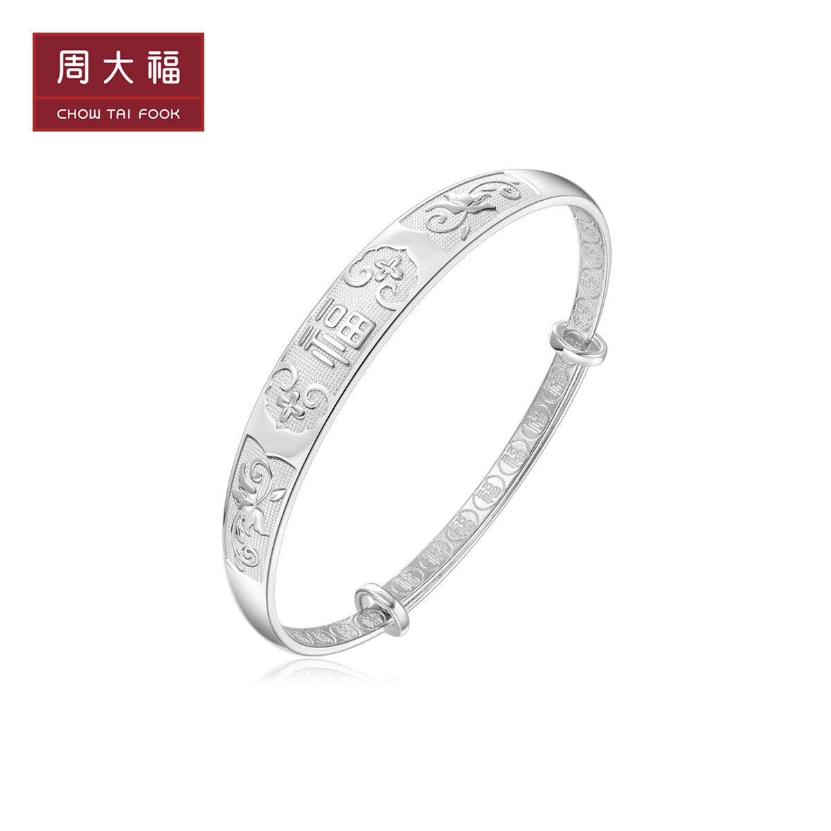 Chow Tai Fook jewelry simple and generous Fu character 925 silver bracelet a variety of gifts preferred