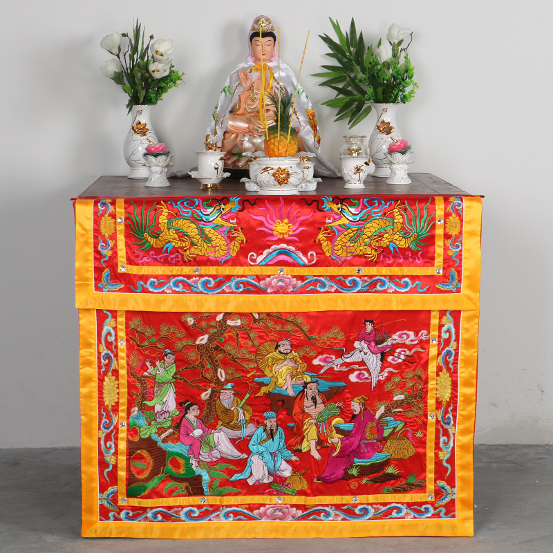 Taiwanese version of the home eight immortals across the sea table around the embroidery for the tablecloth red table skirt horizontal table around the golden jade full hall eight immortals table around