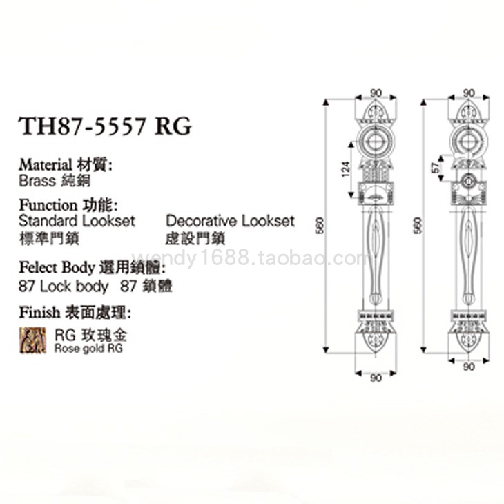 Taiwan Workshop Tai Good Copper Lock Villa anti - theft all copper into the door lock TH87-5557RG