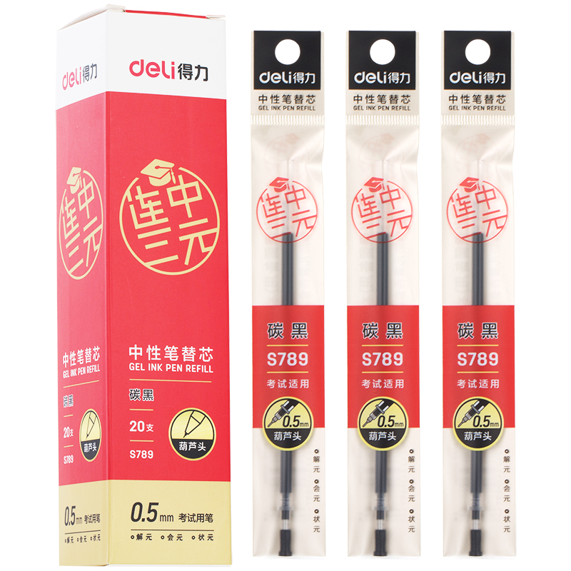 Deli gel pen with three yuan set 2B answer card pencil lead core rubber carbon black 0 5mm gel pen replacement core refill box gel pen Student writing stationery examination office supplies