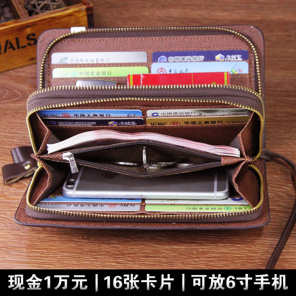 Large-capacity wallet men's long version double zipper pure cowhide wallet business Japanese and Korean clutch men's clutch clutch bag