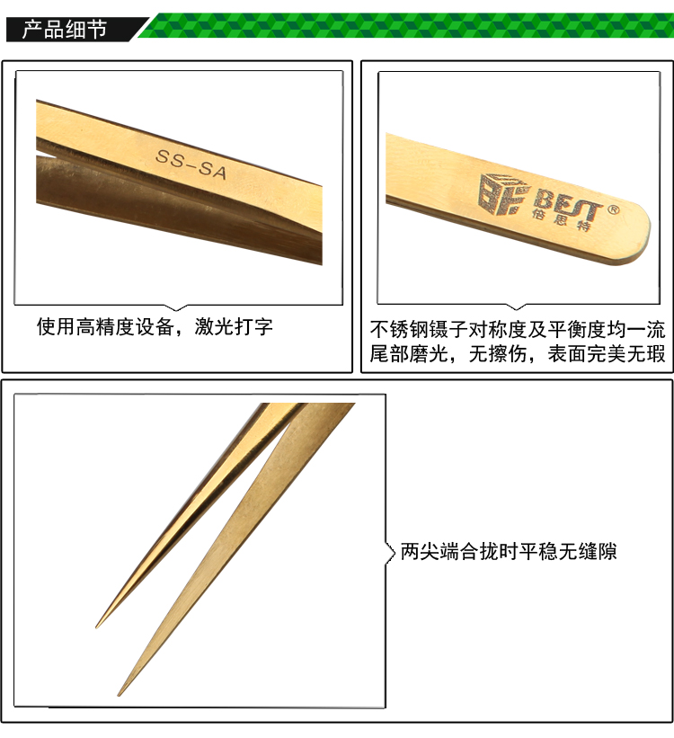 Best special-point non-magnetic straight head tweezers stainless steel pointed precision tweezers