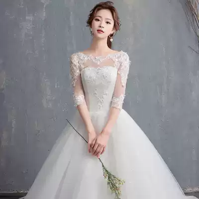 2021 new bride shoulder simple wedding dress dress Mori line chest dreamy tail out thin light