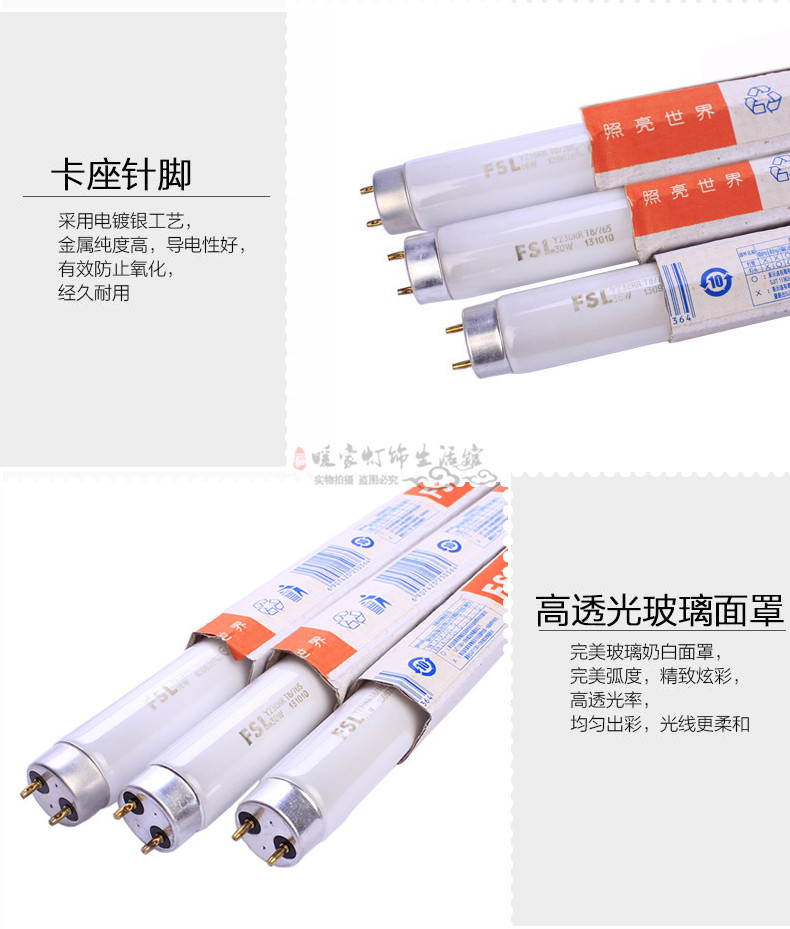 Foshan lighting t8 lamp tube 40W fluorescent light tube T5 three-base color fluorescent light grid lamp mirror front light 18W30W36W