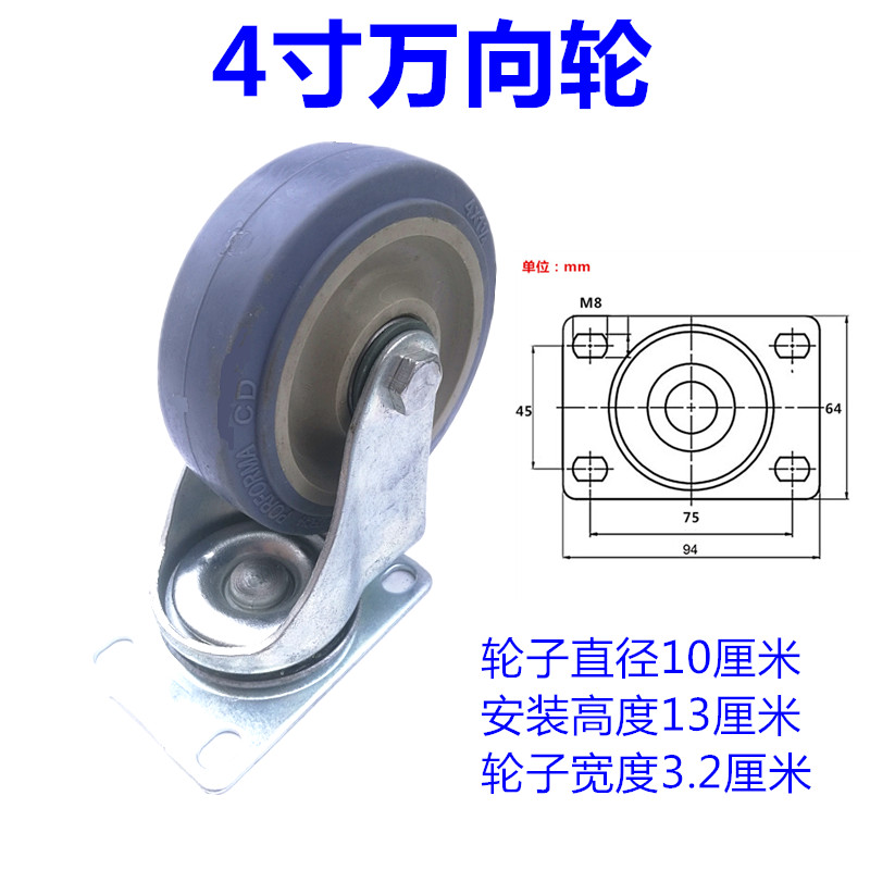 Universal wheel 3-inch mute rubber wheel 4-inch heavy-duty industrial flatbed trolley trolley 5-inch dual-axle wheel with brake