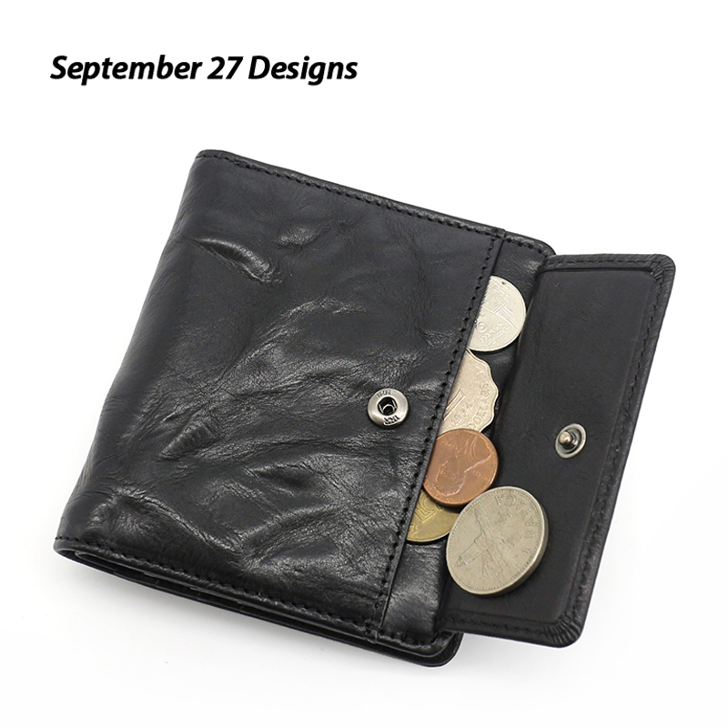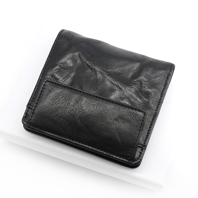 Genuine leather headlayer Bull Leather Crumpled Retro Little Money Bag Button Zero Money Bag Coin Bag Multi-Position Male Style Small Card Clip Tide
