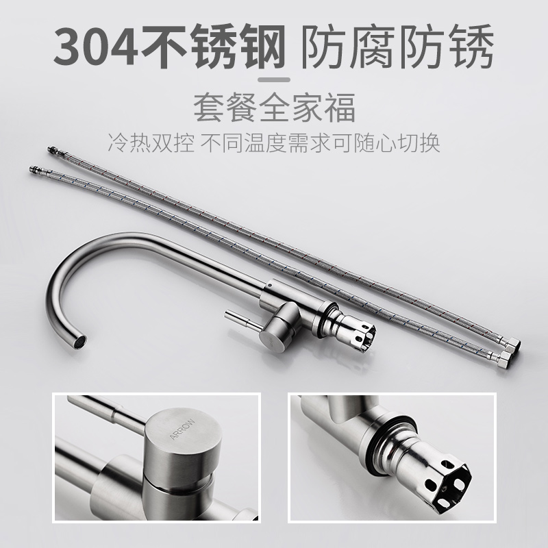 Wrigley kitchen splash-proof faucet single cold and hot 304 stainless steel laundry bowl sink sink pull-out household