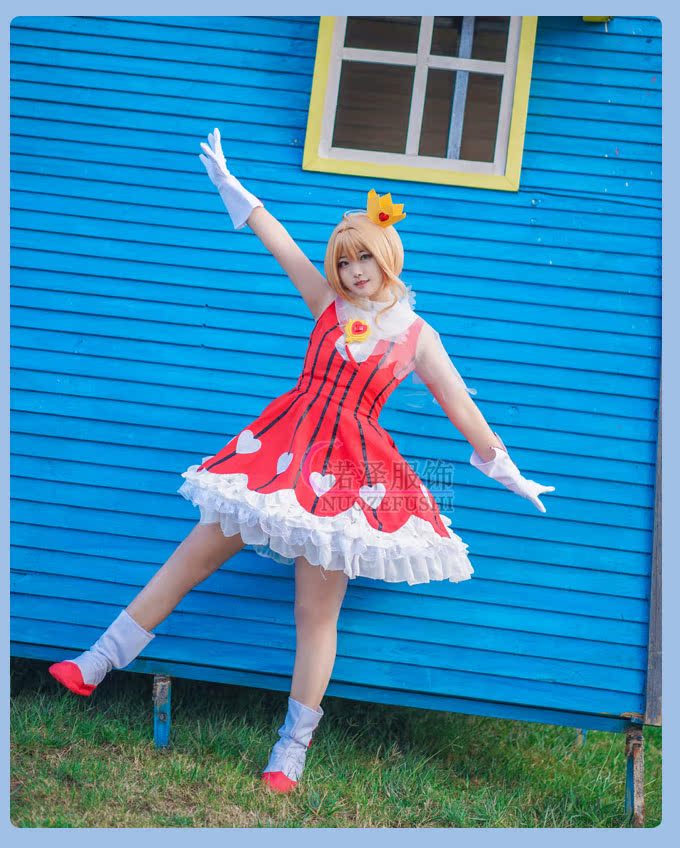 Kuro magic makes Sakura cos Variety Sakura transparent card op red battle suit COSPLAY costume female