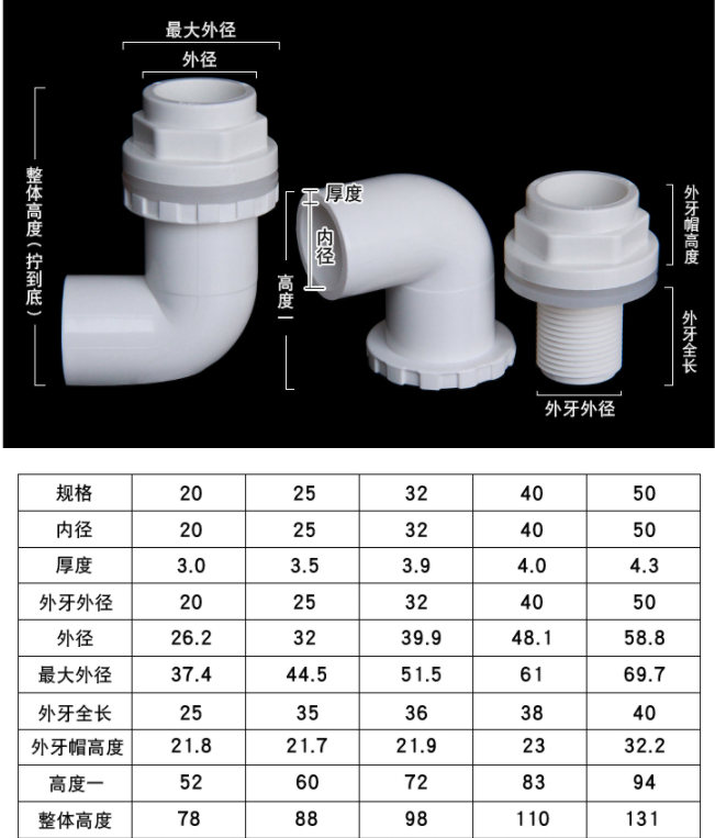 Fish tank upper and lower water pipe fittings thickened inside and outside silk straight water ethnic overflow strong drainage plastic pipe fittings PVC joints