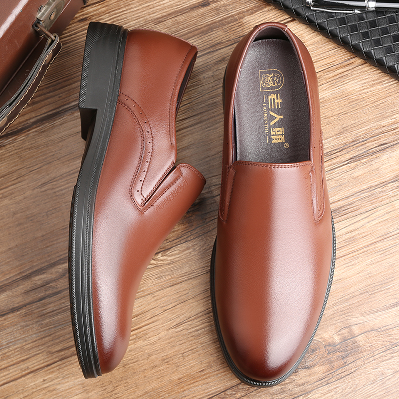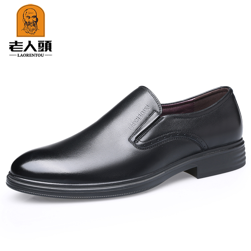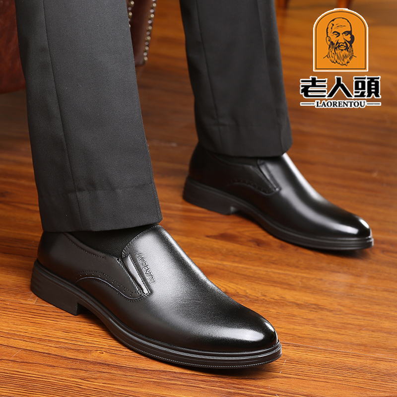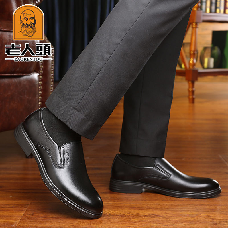 Old man's head men's shoes real leather men's business formal leather shoes autumn breathable round toe black middle-aged casual dad shoes