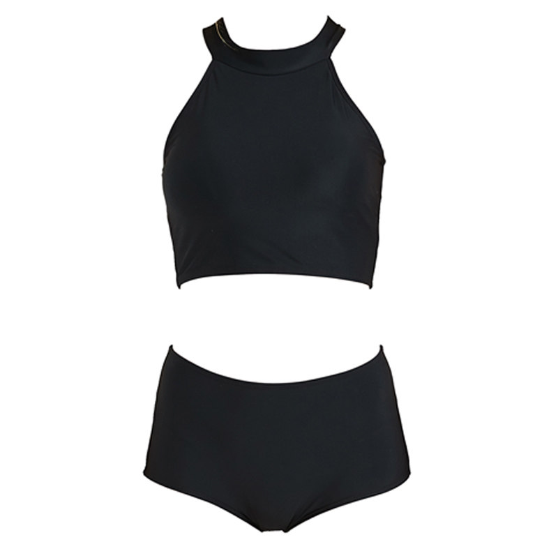 Europe and the United States ins wind sexy bikini black swimsuit women's triangle two-piece high waist conservative belly cover large size swimsuit