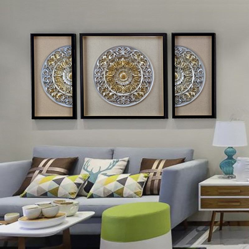 New Chinese Living Room Decoration Painting Giant of Genguan Hanging Paintings Triptych Modern Minimalist Sofa Background Wall Hanging Painting Murals
