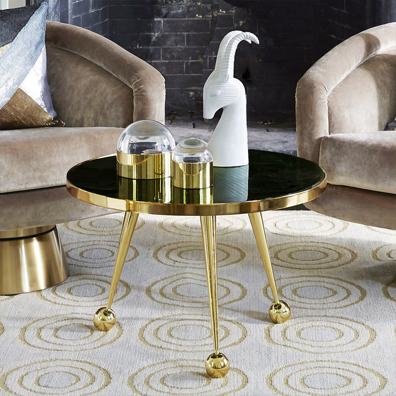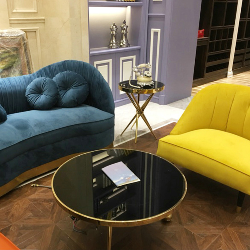 Light luxury classic round stainless steel tea few minimal Nordic personality tempered glass creative high foot titanium alloy coffee table