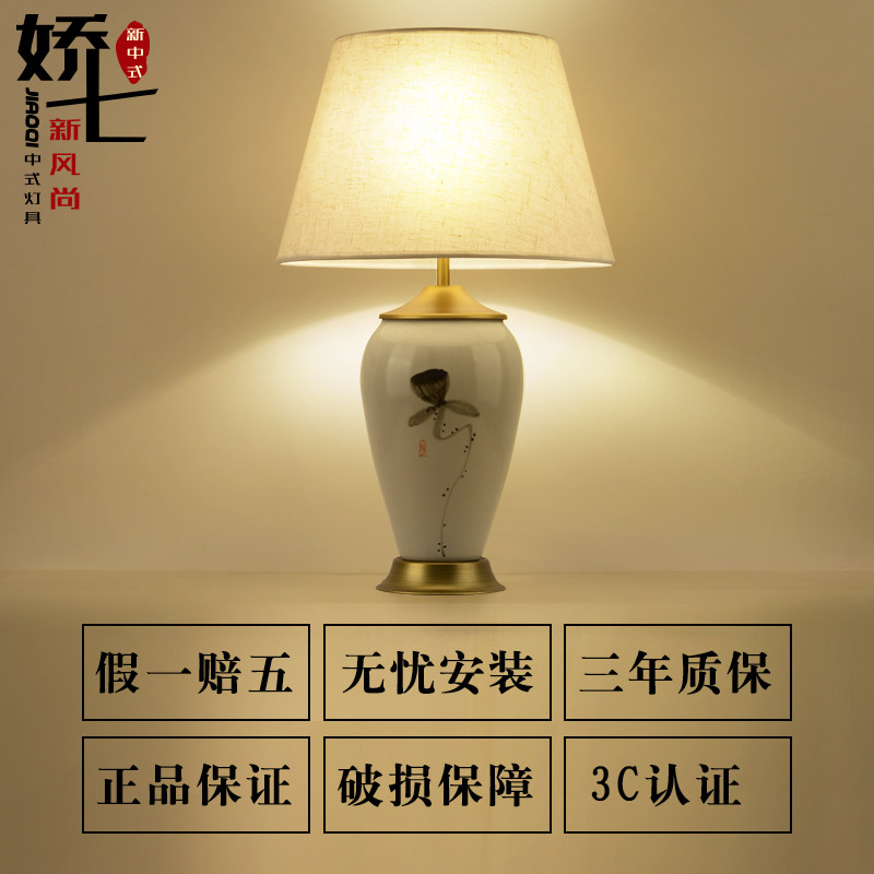 New Chinese table lamp Bedroom bed head lamp Living room Book room Tea Table vase Decorative Table Light Cloth Art Ceramic Table Lamp Retro
