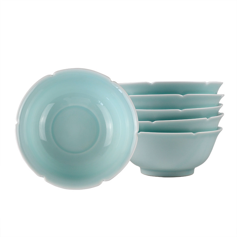 Landscape One Song Banquet Tableware Kuikou Ceramic Rice Bowl Simple Shadow Green Soup Noodle Bowl Jingdezhen Hutian Kiln Bowl Chinese Style