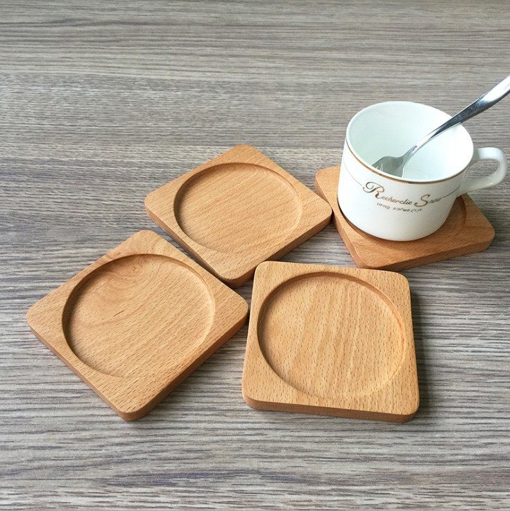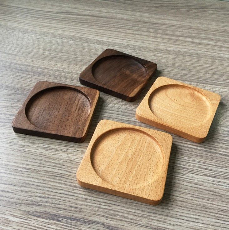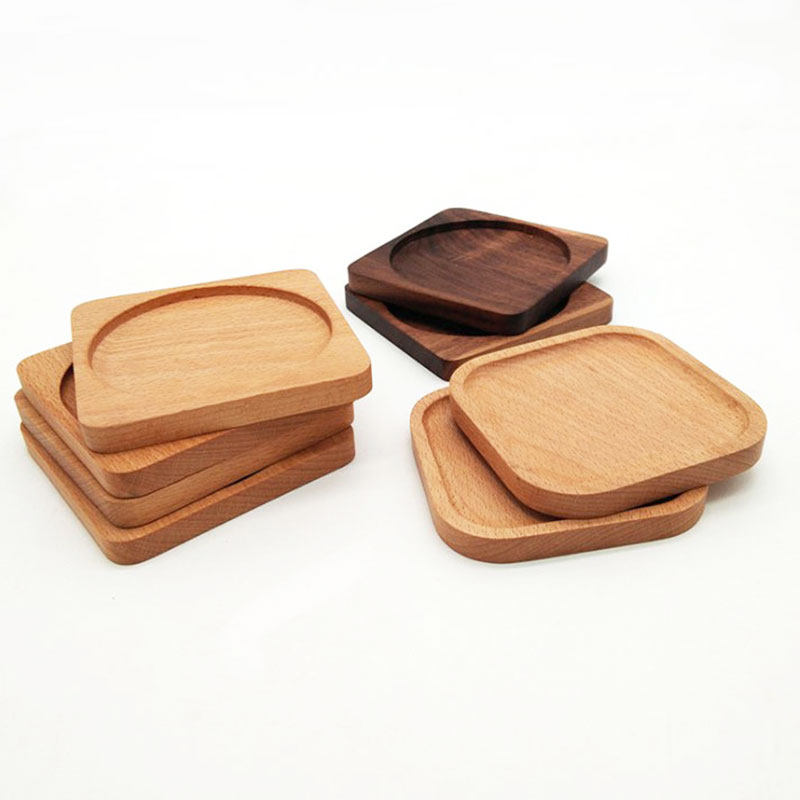 Wooden coaster log tea coaster solid wooden coffee cup holder whole wood unpainted water coaster square concave heat insulation mat