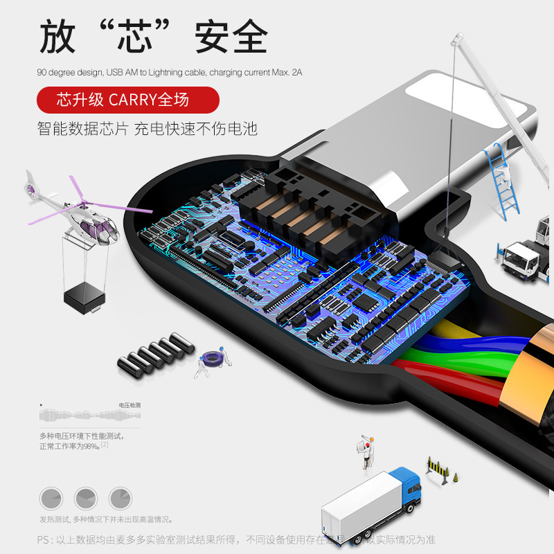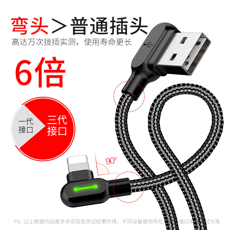 Applicable to Apple iPhone 12 data line double bend charging line 6 7 11 mobile phone 8XRS mobile phone with lamp