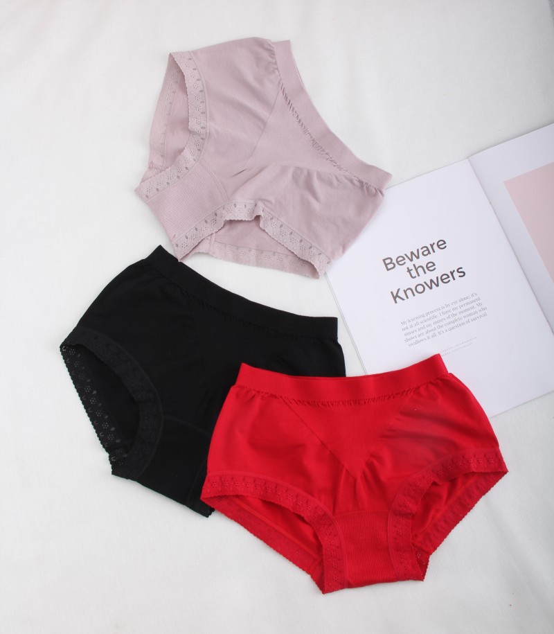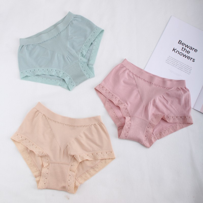 Export Japanese women's seamless comfortable soft mid-high waist bag hip panties ladies lace briefs bottoms cotton