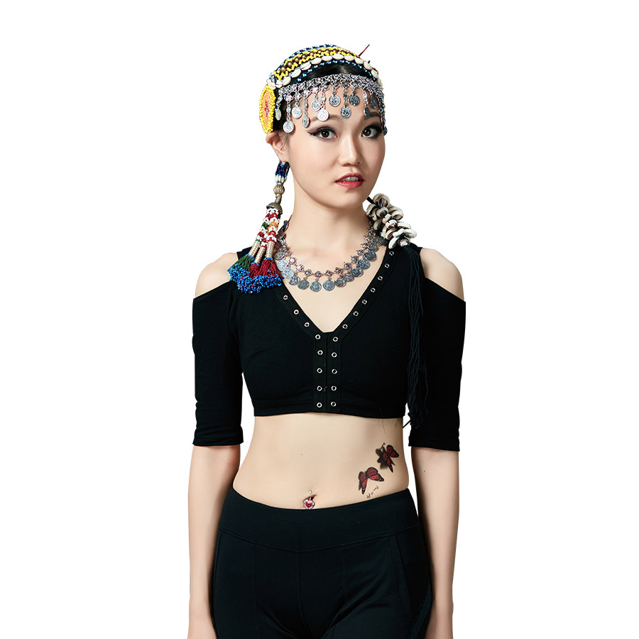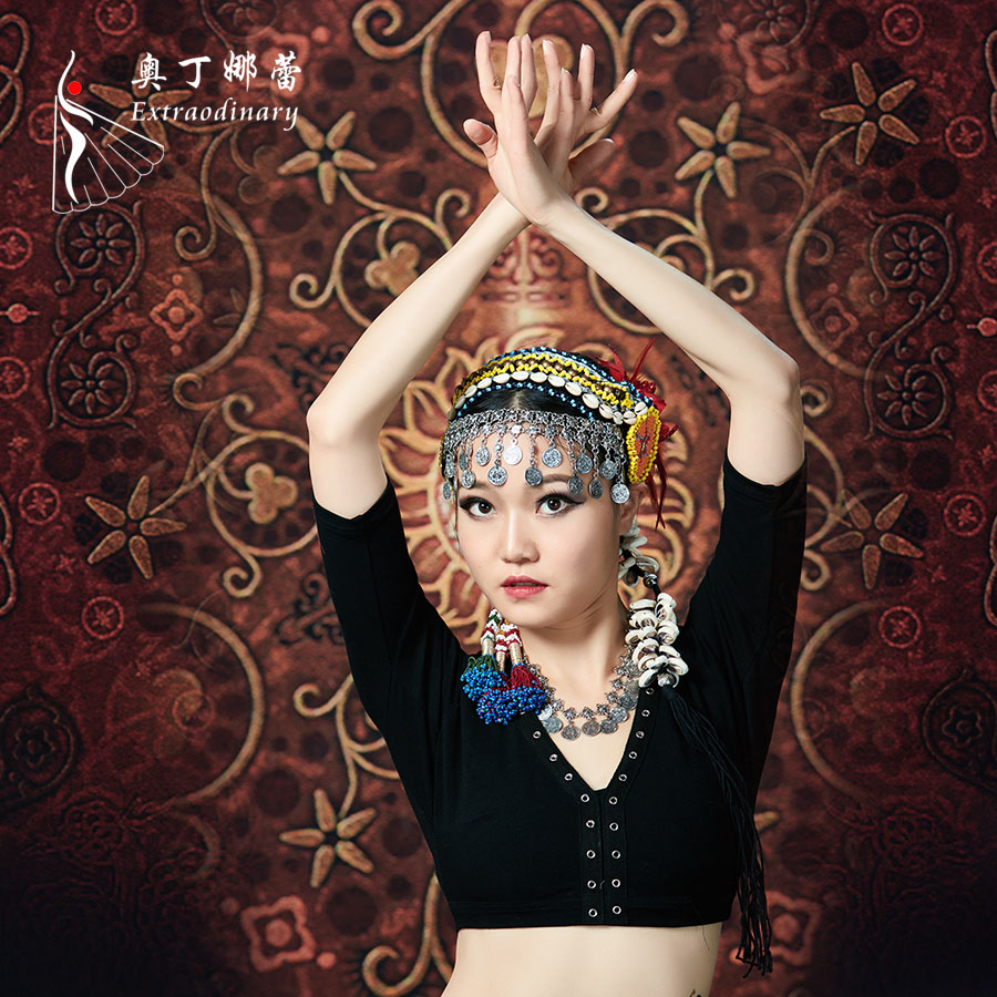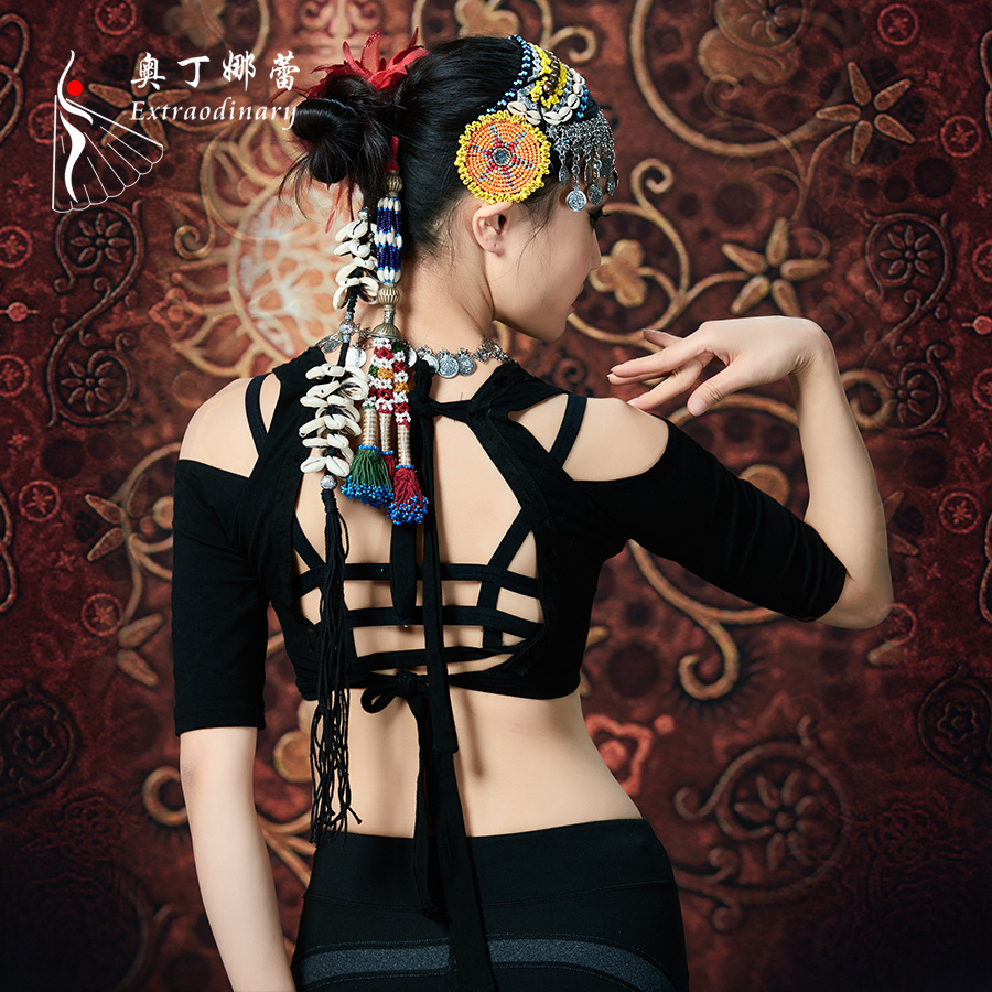 Odina Lei's new belly dance tribal wind top V-neck strapless backless ATS practice performance Qiuli top