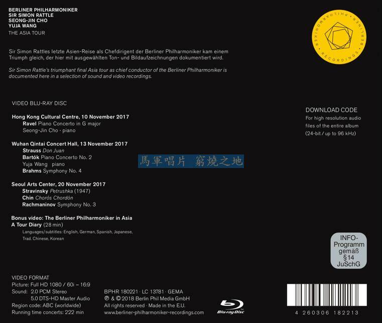 Berliner Philharmonic Asia Tour (Live) Wang Yujia Zhao Chengzhen Simon. RATTLE 2017 Blu-ray 50G