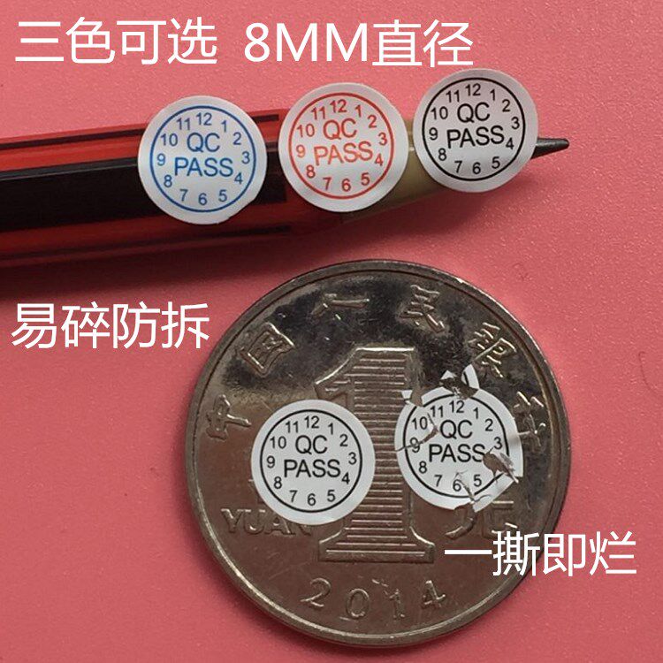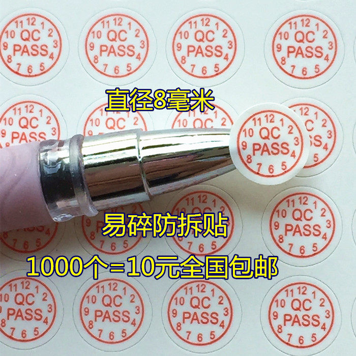 1000 QC PASS qualified stickers fragile anti-tear 8MM round screw holes label QC quality inspection qualified