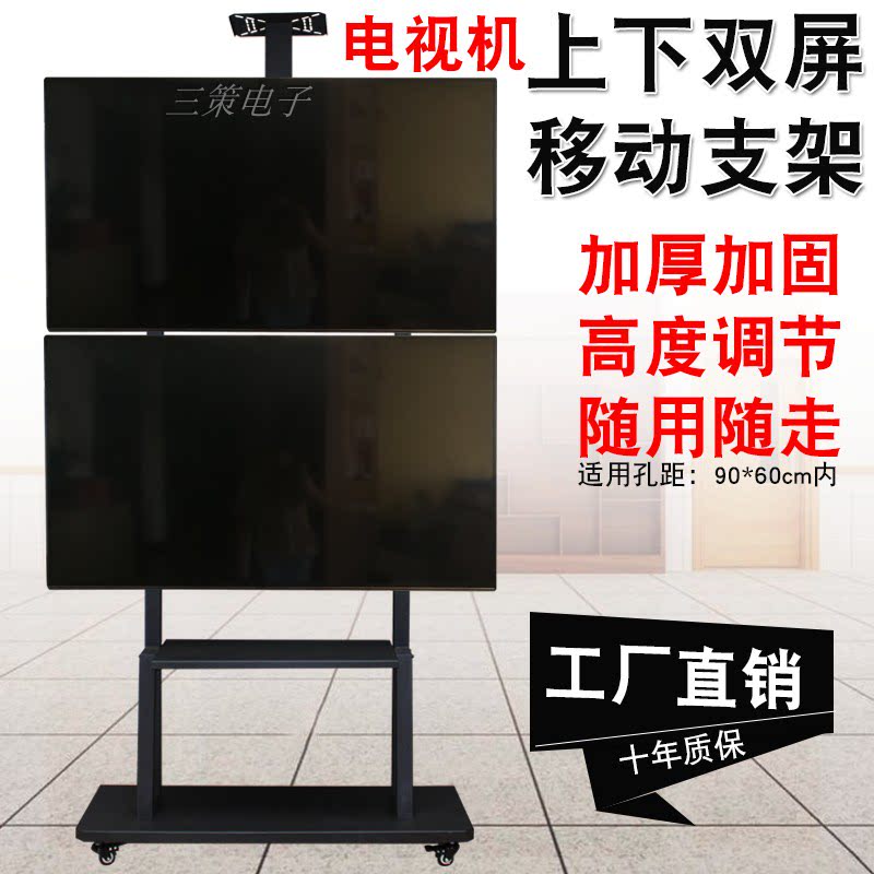 Universal 42-65 inch TV floor bracket up and down double screen 2 screen mobile cart teaching conference all-in-one rack hanger