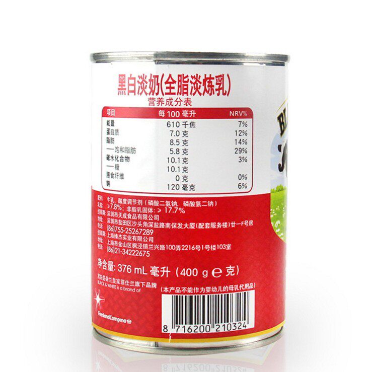 Black and white light milk 400g * 48 whole box Dutch full-fat milk port type silk stockings milk tea dessert special