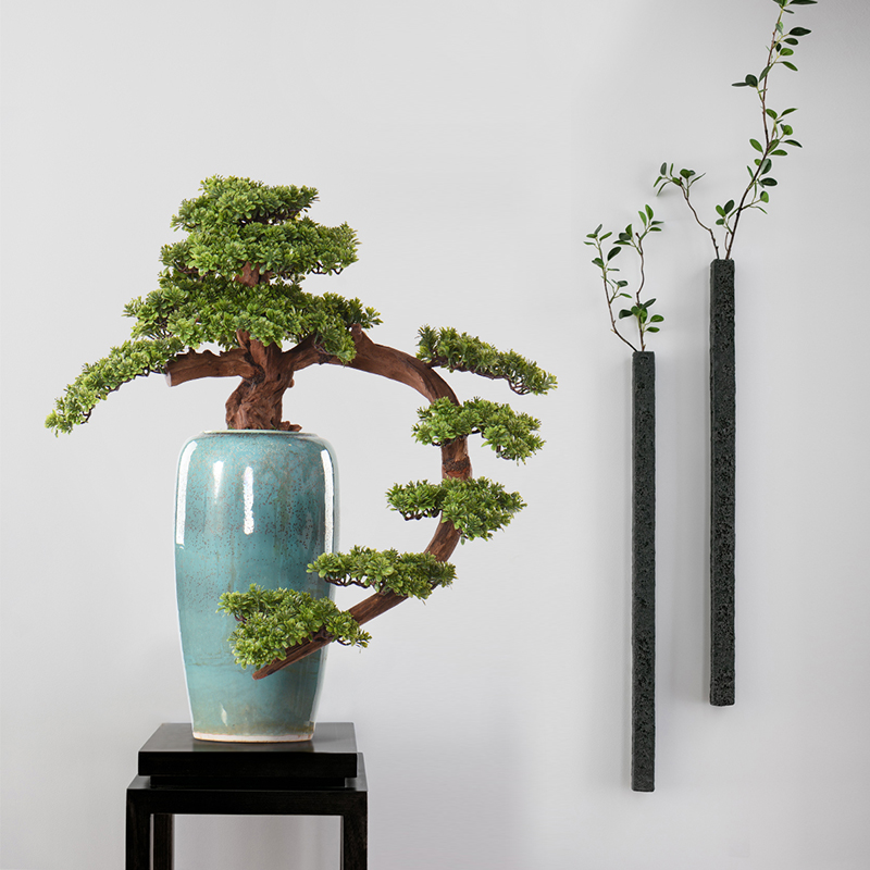 Emulation Merchants Greeting Guests Pine Bonsai Potted potted room Green Planting Furnishing new Chinese style Pine Tea Room Sample room Swaying Pieces