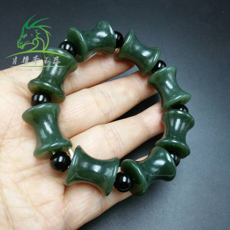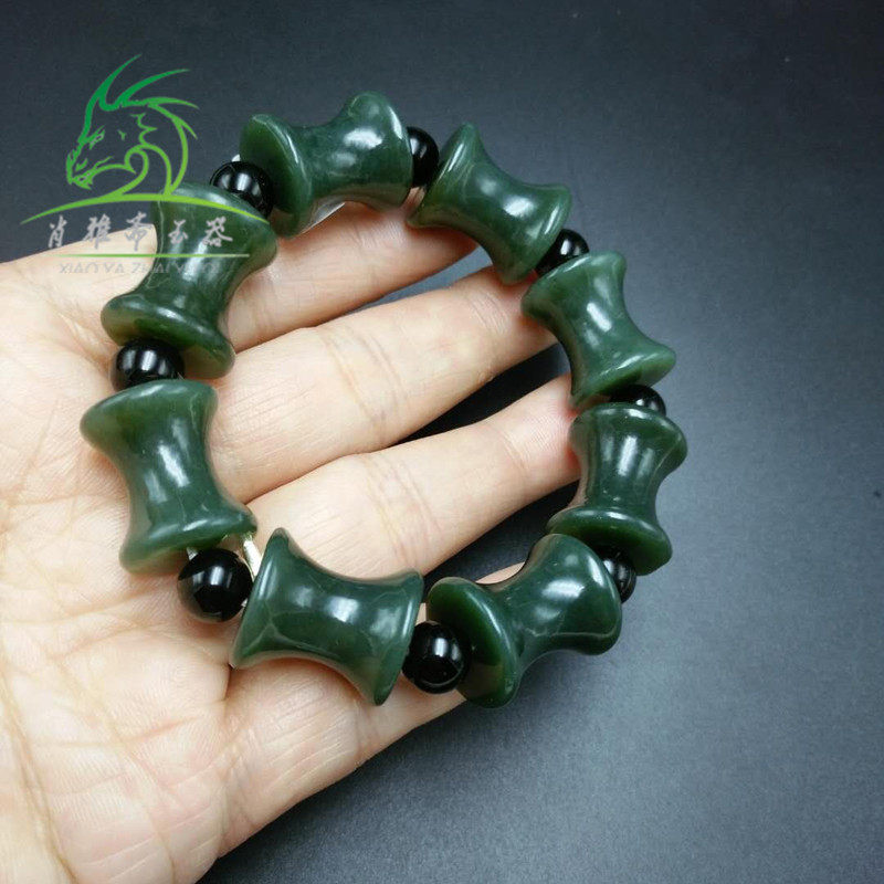 Xiao Yazhai Natural Xinjiang Hetian Jade Green Jade Bamboo Festival Hand-carved Jade Bracelet for Men's Safe Festival