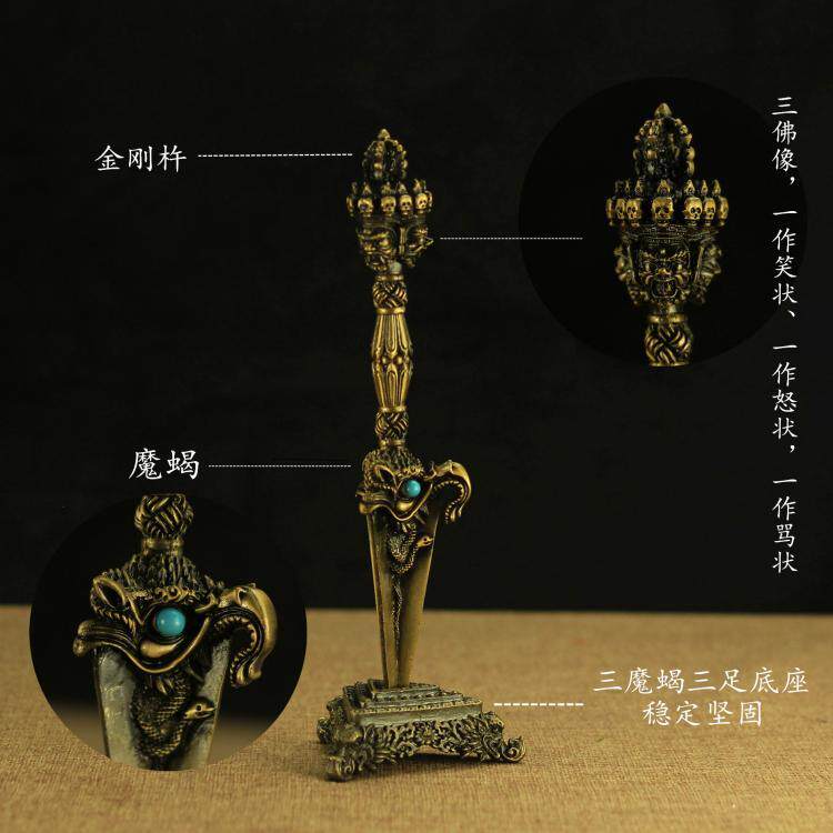 Pure copper magic scorpion Puba pestle Buddha with Tantric copper descending magic pestle three-sided Puba pestle handmade Vajra pestle large