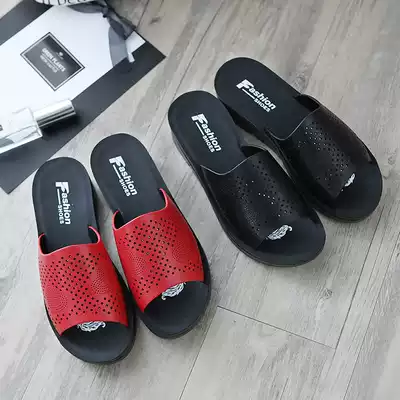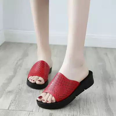 Middle-aged and elderly slippers summer wear soft bottom non-slip fashion Lady leather middle-aged comfortable 2021 new mother cool