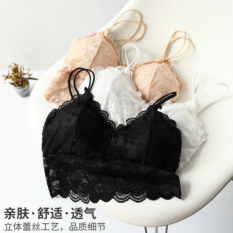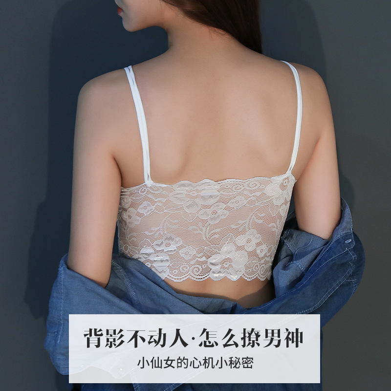 Langsha base bandeau underwear sexy anti-walking light gathered chest-wrapped beauty back bra Lace camisole women's summer