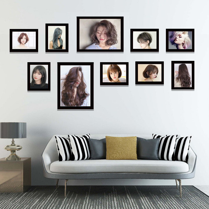 Barber shop decoration background wall barber shop hanging painting wall painting hair salon combination photo frame photo wall European and American hot dyeing